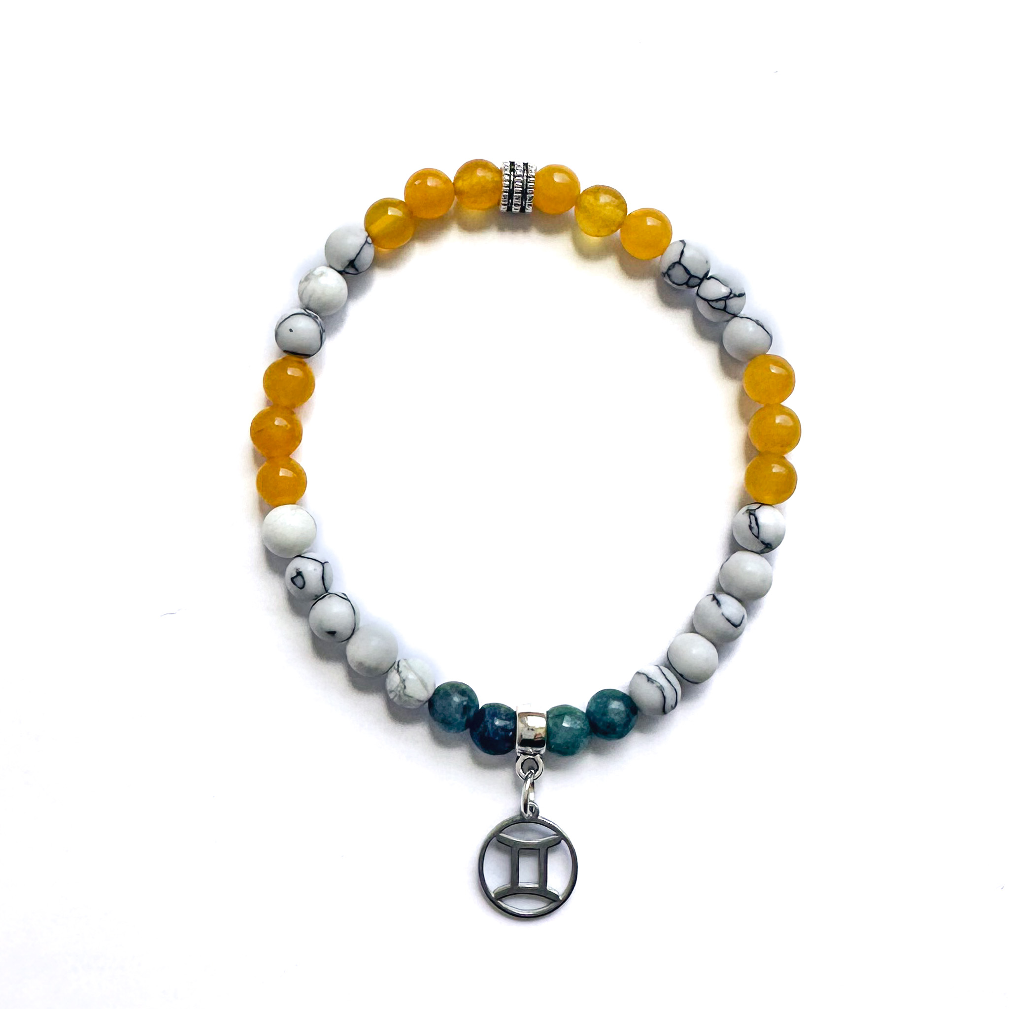 Pulsera diseñada para acompañar la energía mental y comunicativa de Géminis, ayudando a ordenar pensamientos, favorecer una comunicación consciente y sostener el enfoque sin sobrecarga.